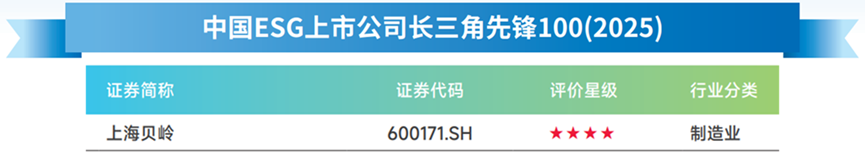 近日,《长三角ESG行动报告(2025)》发布赚配网,上海贝岭(600171)入选“中国ESG上市公司长三角先锋100(2025)”。