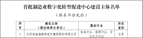 9月28日,工业和信息化部公布了《首批制造业数字化转型促进中心建设主体名单》,诚益通(300430)凭借在医药、食品、石化化工等行业智能制造领域二十余年的深厚积累,实力入选。